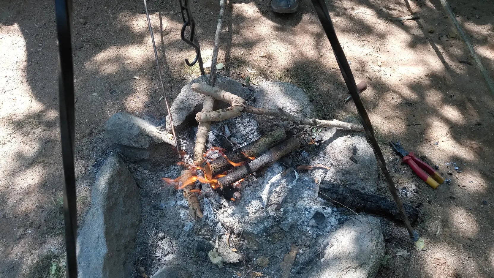Nach Frühstück am Feuer war das Wetter trotz Nässe gut zum Bogenschießen am Waldrand. Einige hatten eigene Bögen dabei, vom Sportbogen bis zum handgeschnitzen Bogen konnte man einiges bestaunen. Nachher wurde fleißig am Baumhaus und einer Hütte gebaut. Am Nachmittag regenete es fast durchgängig als wir das örtliche Dorffest besuchten. Dort gab es beste handgegrillte Burger, eine undefinierbare rote Limonade und mit etwas Geduld auch Pommes. Die Blaskapelle wurde als “gar nicht so schlecht als Hintergrundmusik” beschrieben. Ein paar Kinder hatten sich das Gesicht schminken lassen und es gab unbegrenzten Nachschub an Seifenblasen und Luftballons. Regen hin oder her, es war spaßig.