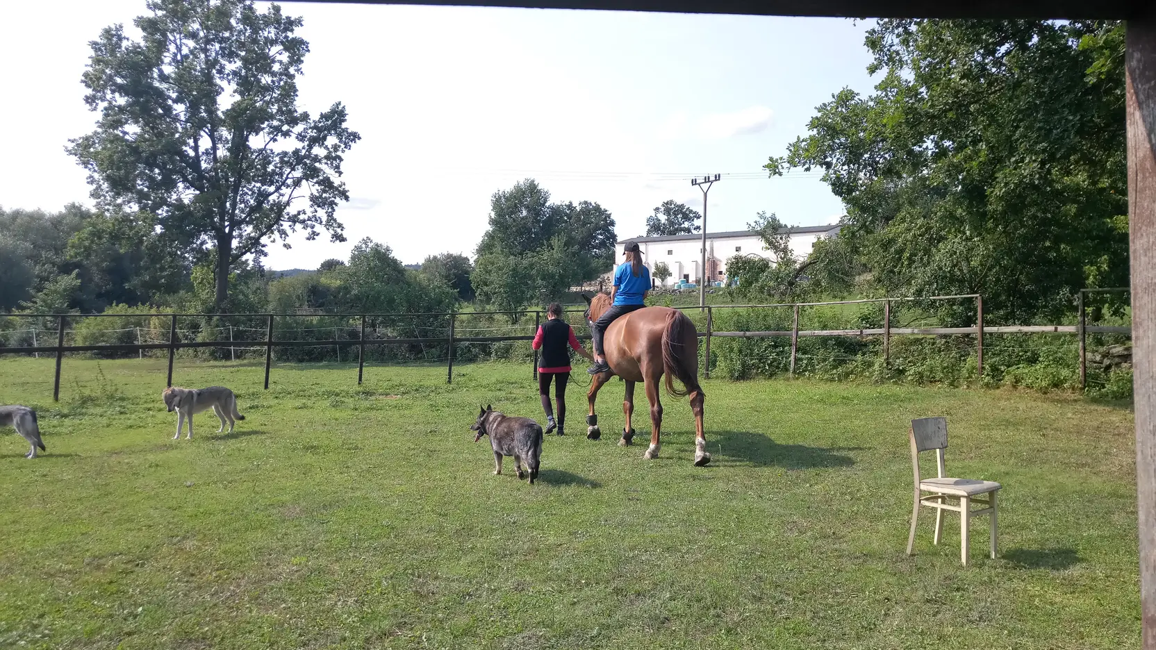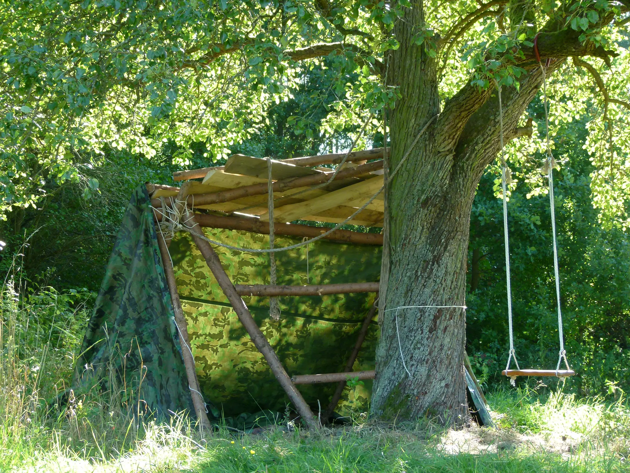 Am Mittwoch wurde es sonnig und trocken. Die leider ausgesprochen schwierige Schatzsuche endete nachmittags erfolgreich. Die Kinder hatten wieder viel Zeit für Volleyball und das Baumhaus wurde mit Hängematte und Weltempfänger so richtig eingeweiht. Das zweite Zelthaus wurde nun auch fertig und bietet regensicheren Unterschlupf. Der Ausflug zur Dorfbewohnerin mit den vielen Tieren war ein Highlight, denn gerade eine Stunde bevor die Kinder ankamen hatte die Ziege Junge geboren (obwohl die Besitzerin gar nicht wusste, dass sie schwanger war). Die Kinder durften den beiden Zieglein Namen geben, Zacharias und Rosi. Die jungen Tschechisch-slowakischen Schäferhunde spielten wild mit den Kindern und dann durften sie doch noch, obwohl gerade kein Sattel verfügbar war, auf dem zahmen Hengst reiten.