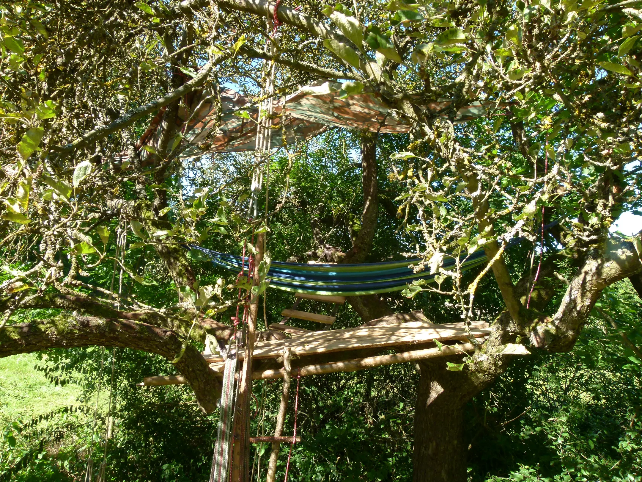 Následujícího rána bylo zespodu slyšet bušení a klepání a nahoře ve slavném kruhu stromů s vícepodlažními houpacími sítěmi se vedly živé rozhovory. V poledne jsme vyrazili na výlet do města. Malé městečko nabízí honosný asijský supermarket, který má prostě všechno, co je dostatečně barevné, mimo jiné i velmi oblíbený, ale pochyný sliz, který voní jako mycí prostředek a je v každém ohledu bez chuti. Ale obchod měl také kladky a lana pro kladkostroj na stromovém domě. Velmi působiví byli jeleni v zámeckém parku, které děti krmily jablky, která nasbíraly po cestě. Volně se tam pohybují v parku a nechají se dokonce pohladit.